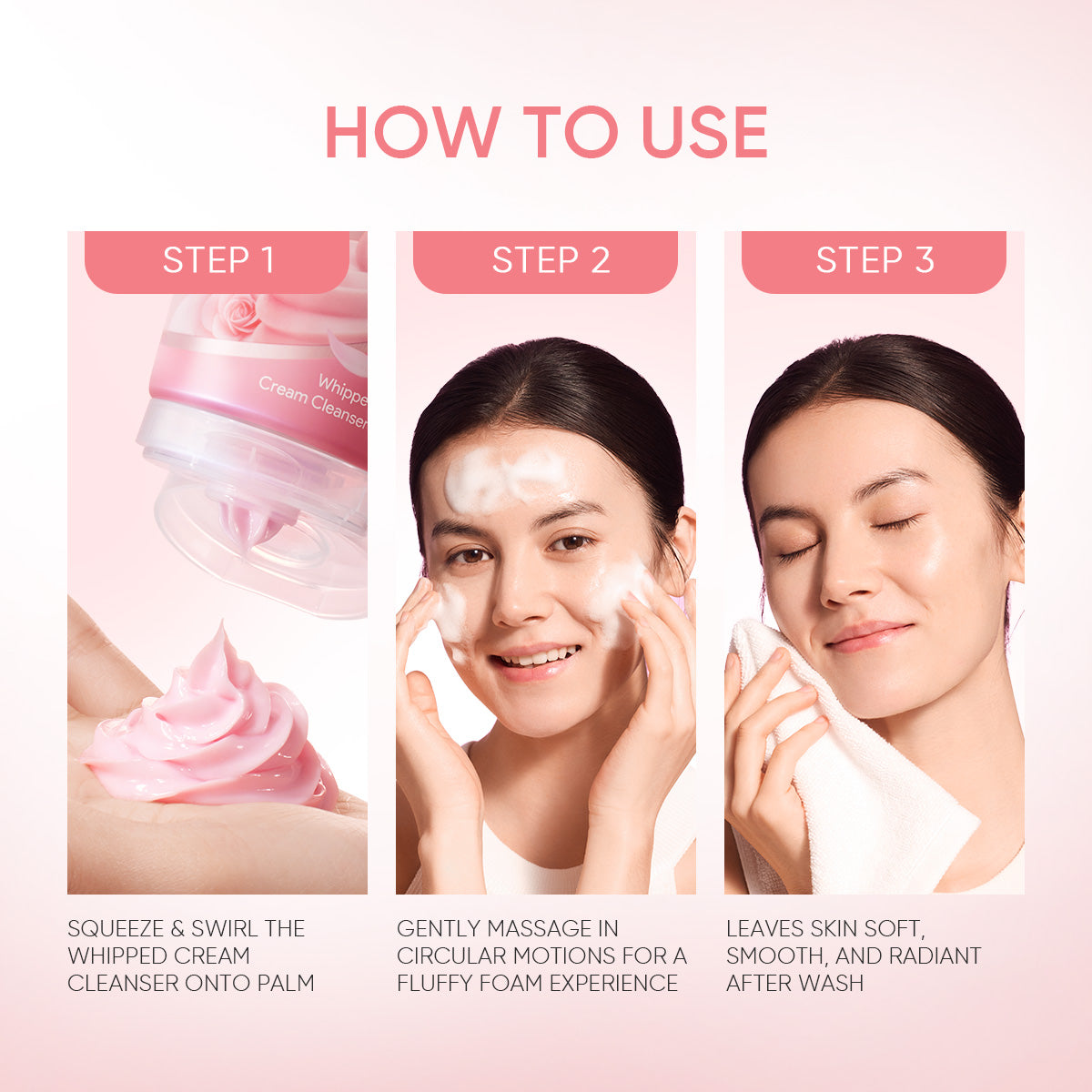 Brightening Whipped Cream Cleanser features an ultra-soft whipped, springy texture that transforms on skin into a stretchy, bouncy cloud-like foam, cushioning the skin for a fun yet comforting daily cleanse.