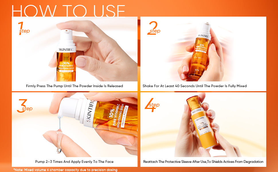 Featuring Dual Chamber Fresh Lock Technology, it protects Vitamin C from oxidation, ensuring maximum potency and freshness with every pump