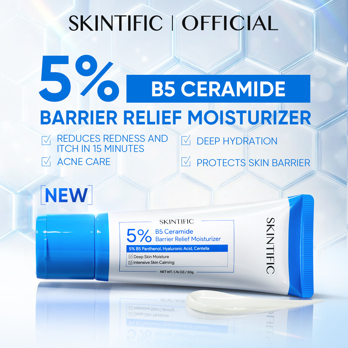5% B5 Ceramide Barrier Relief Moisturizer is not just a basic moisturizer, but a clinically-inspired barrier repair treatment that delivers both immediate comfort and long-term barrier support for stressed or compromised skin.