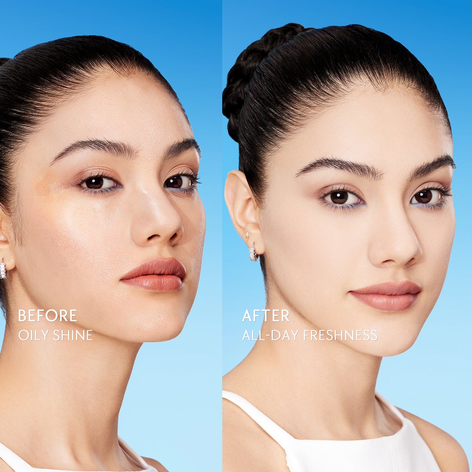 Light-reflecting powder particles blur imperfections for a smooth, shine-free, soft-focus look.