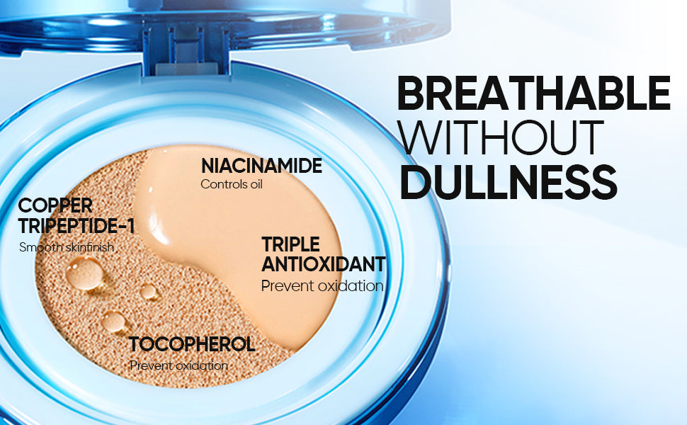 Infused skincare with Triple Antioxidant that prevents dullness throughout the day, as well as Niacinamide, Copper Tripeptide-1 and Tocopherol that make the look flawless, not cakey and transfer-proof